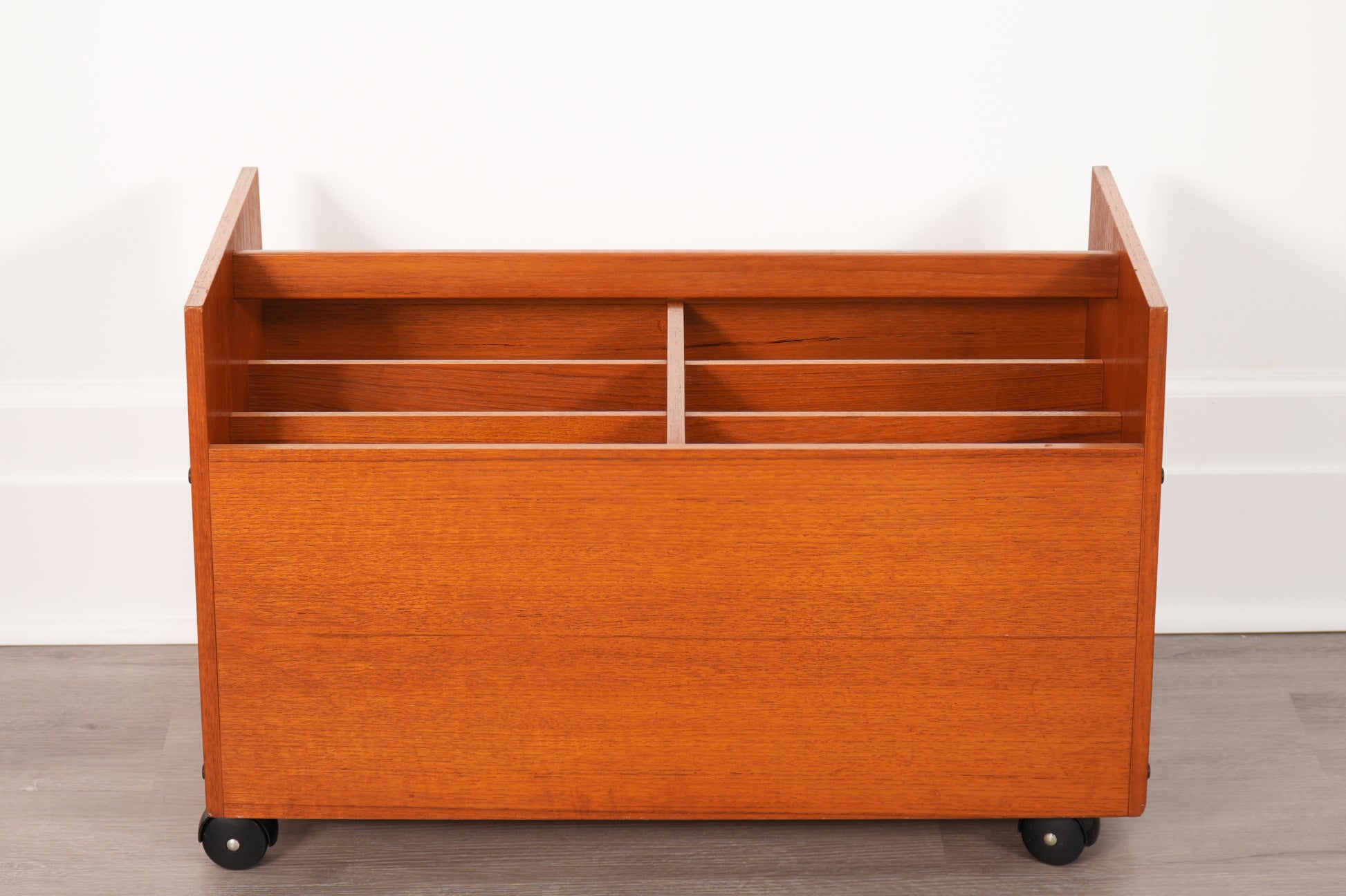 Bruksbo 1970s Norwegian Teak Rolling Vinyl Record or Magazine Caddy