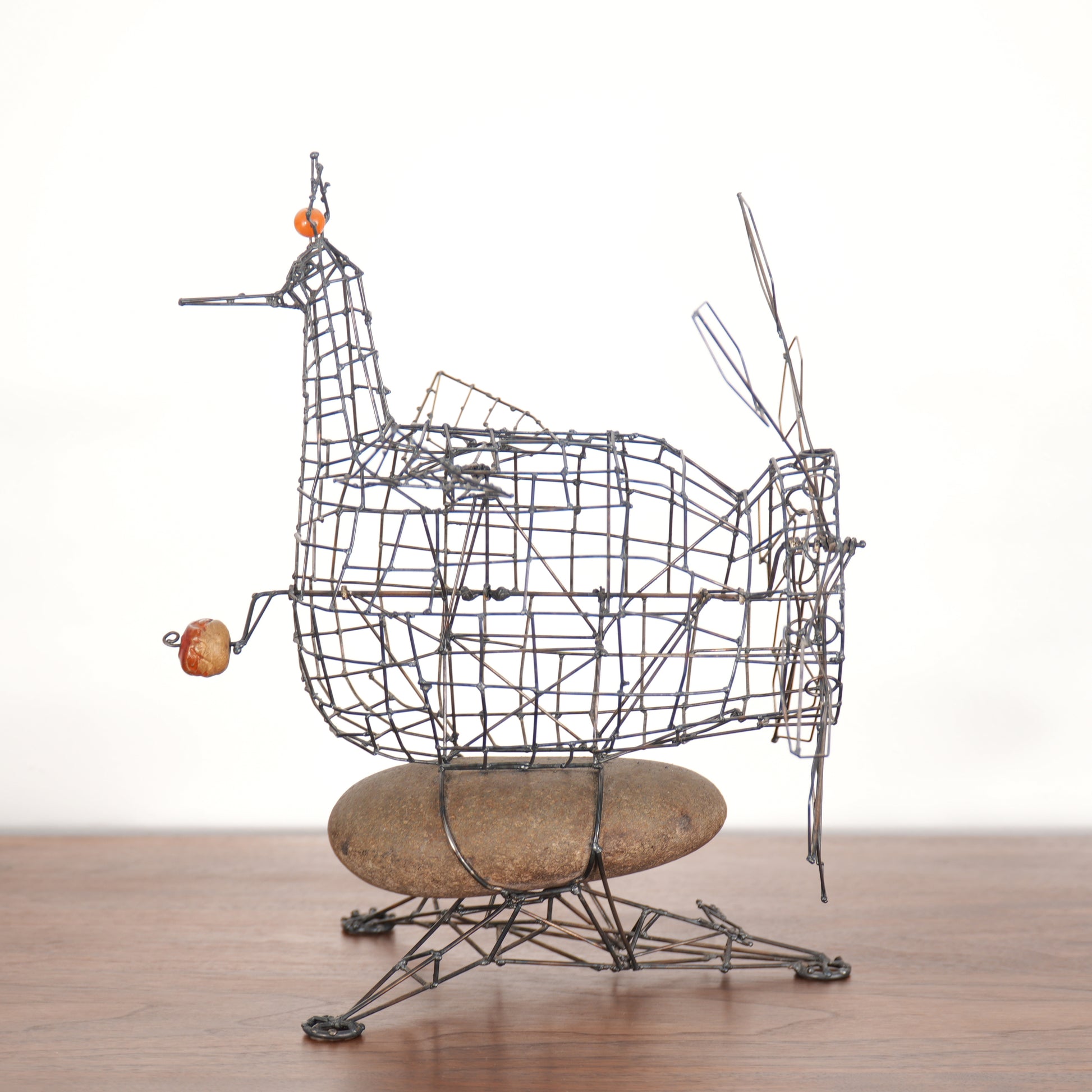 1970s Vintage Joe Police Kinetic Wire Sculpture Hen