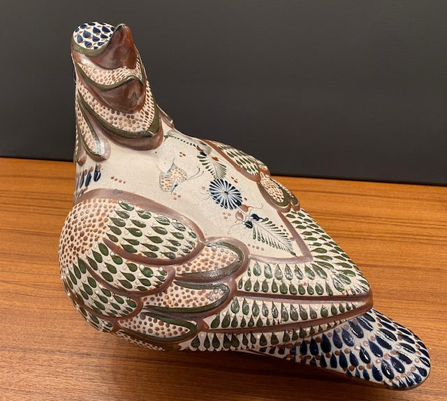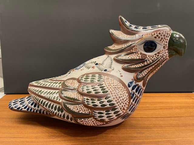 Large 14" Bird Parrot Tonala Pottery Mexico 14" Signed Santana