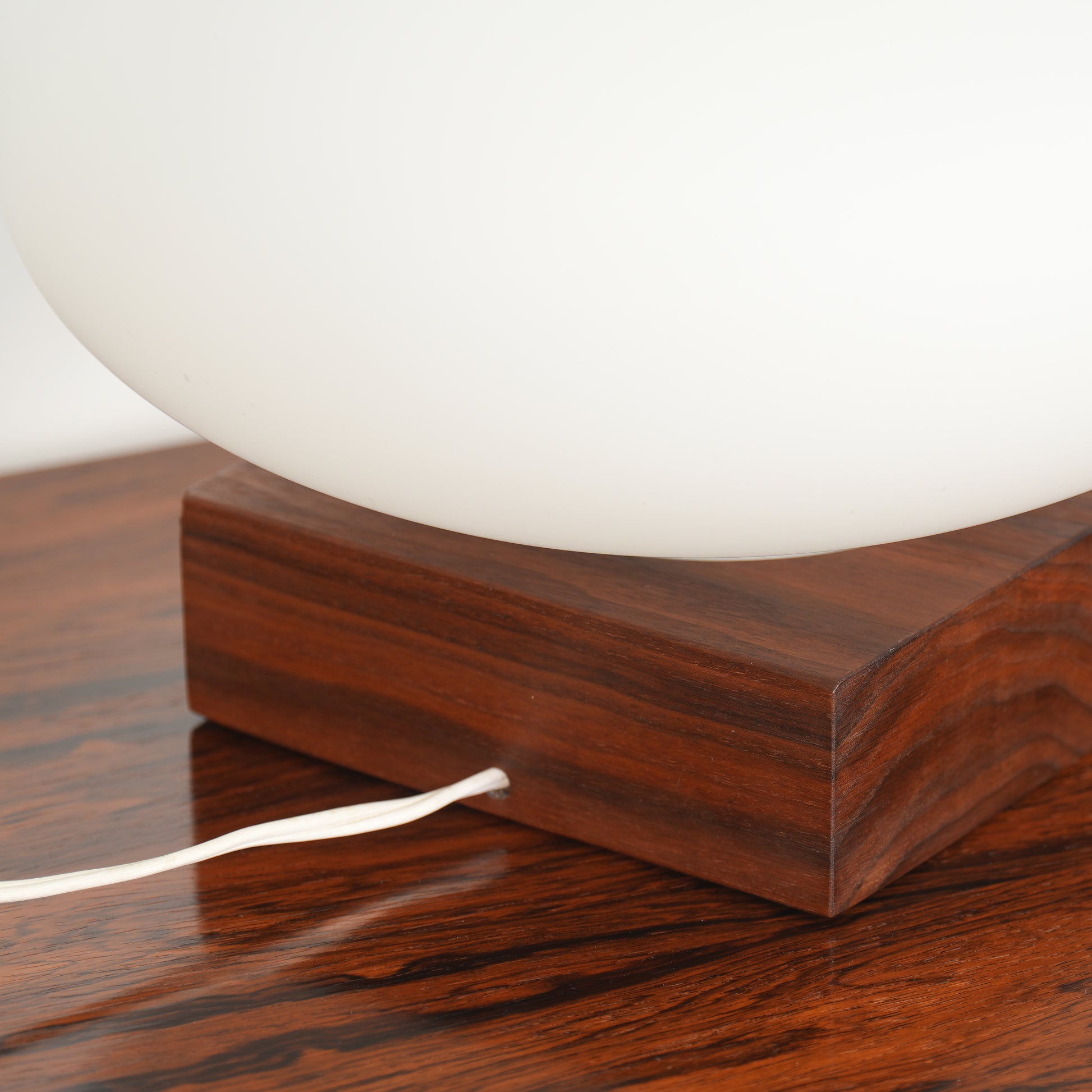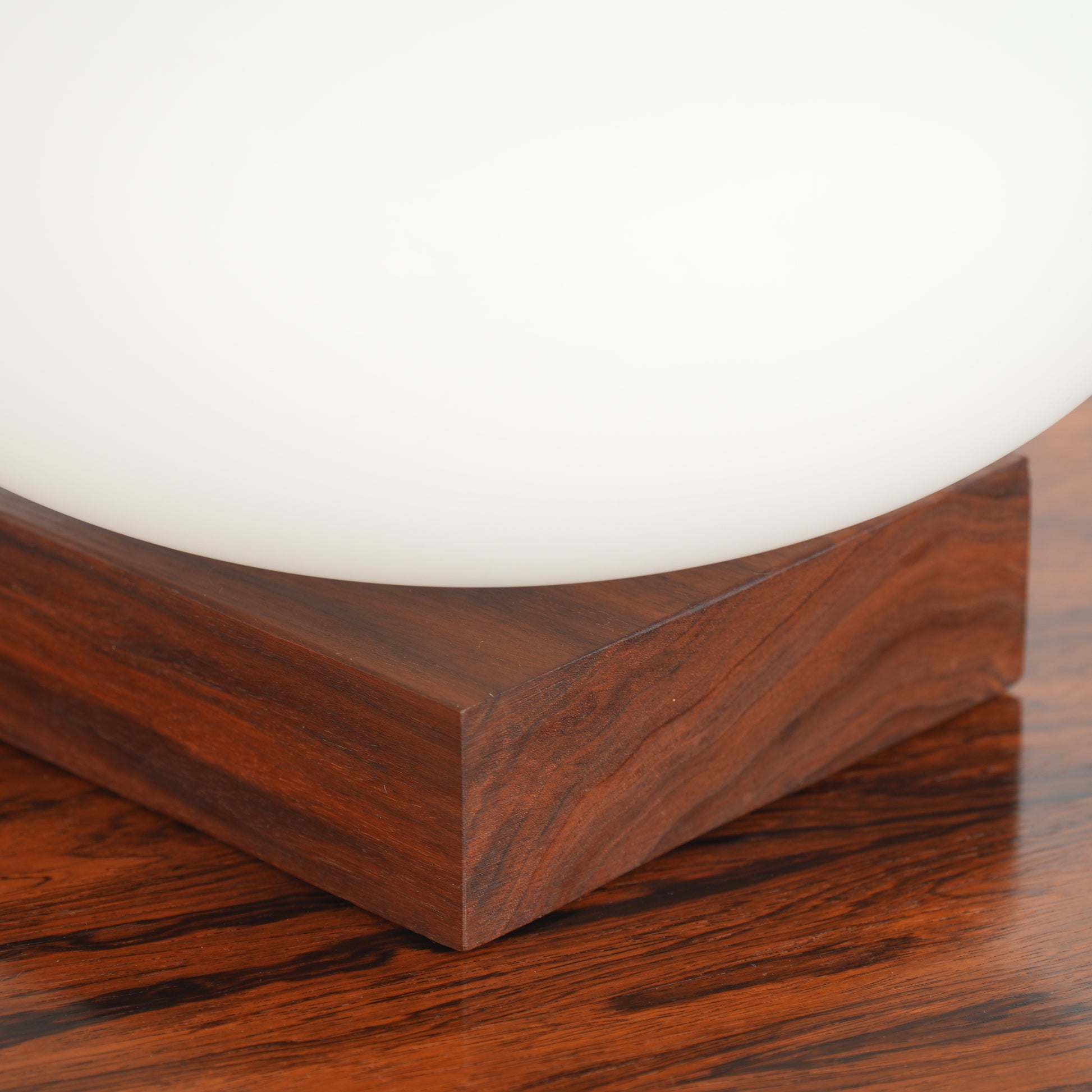 Measurements: Lamp height (base and shade): 8", Walnut base: width and depth: 6", height 2" Shade diameter: 10"