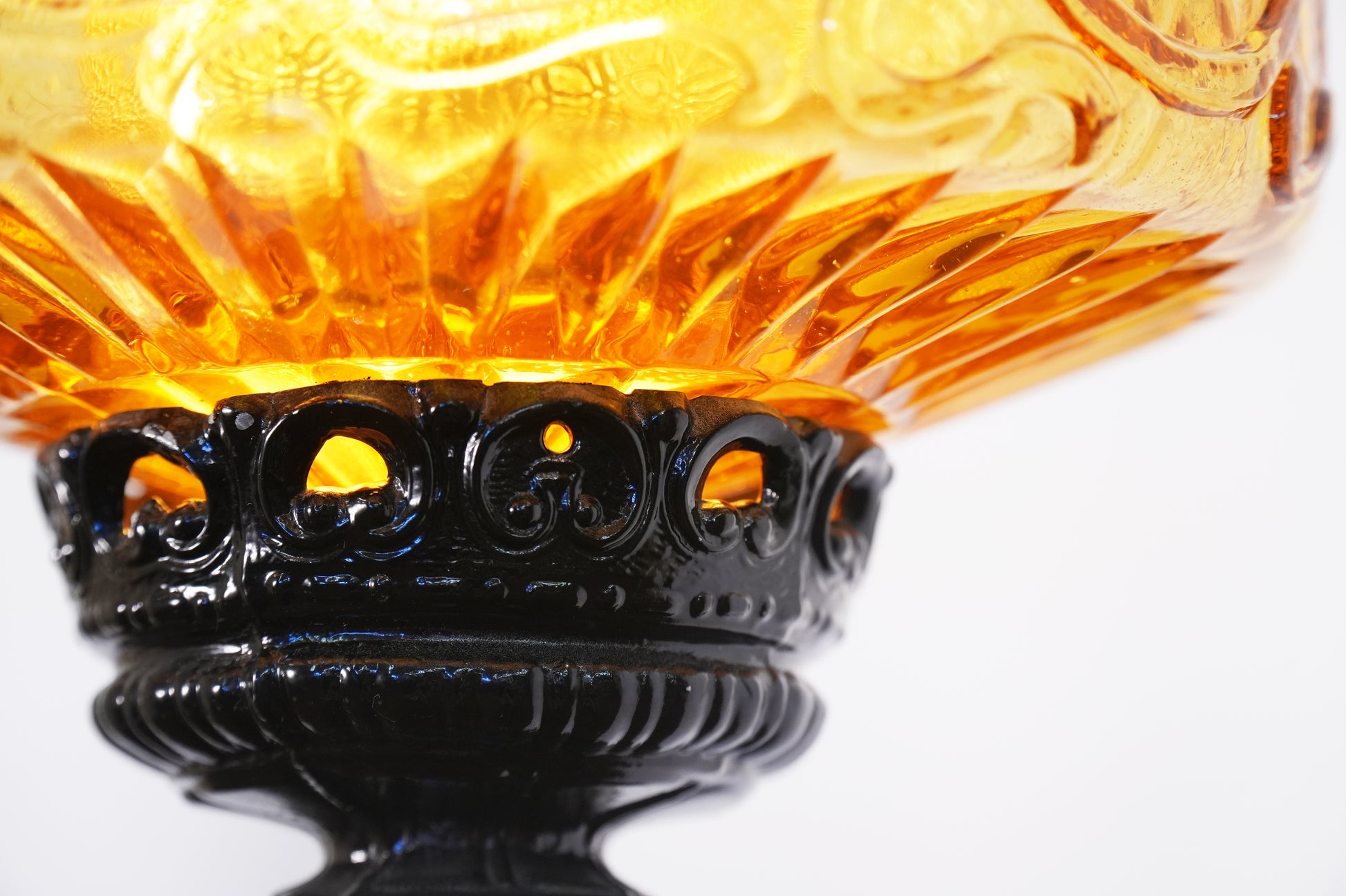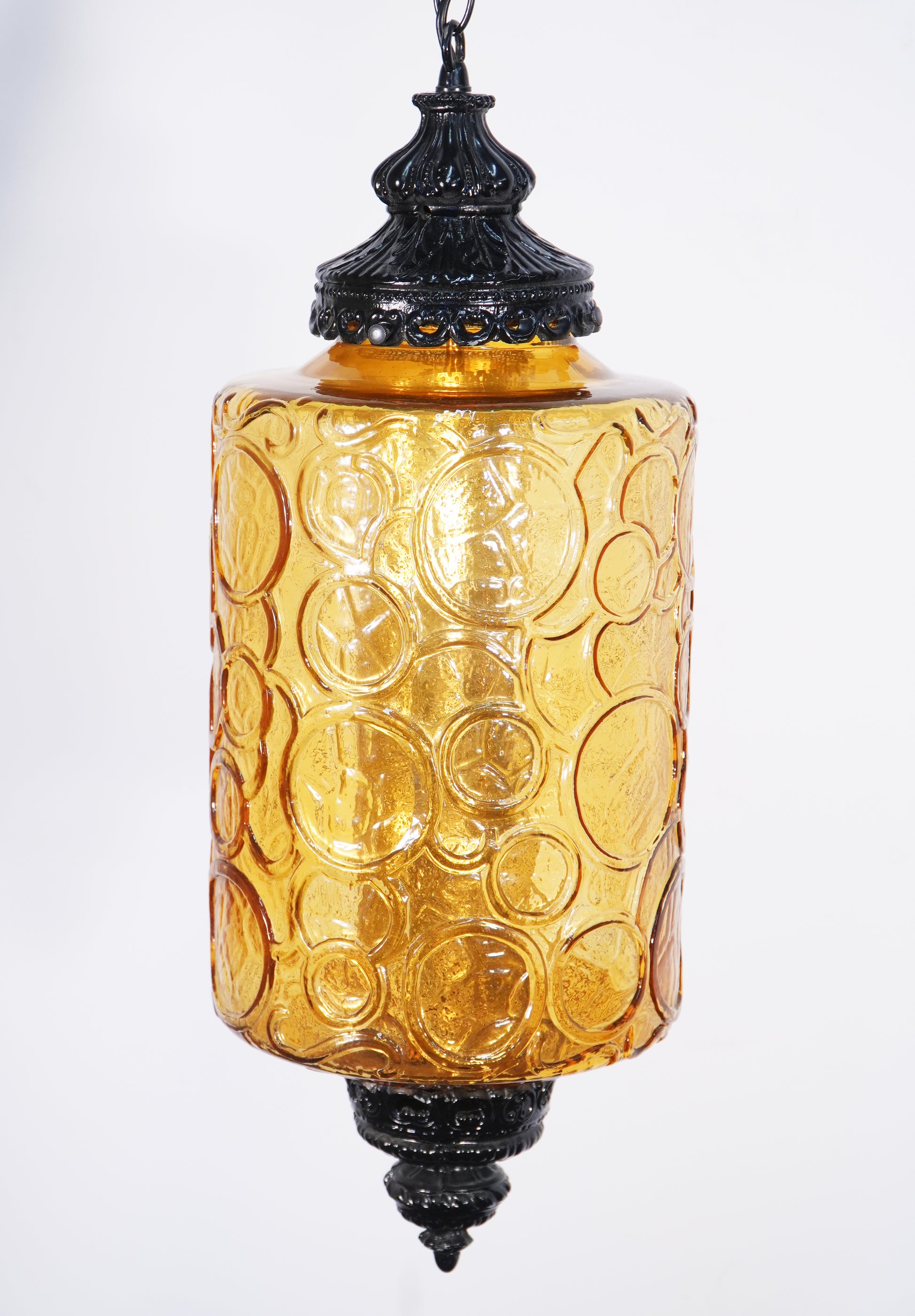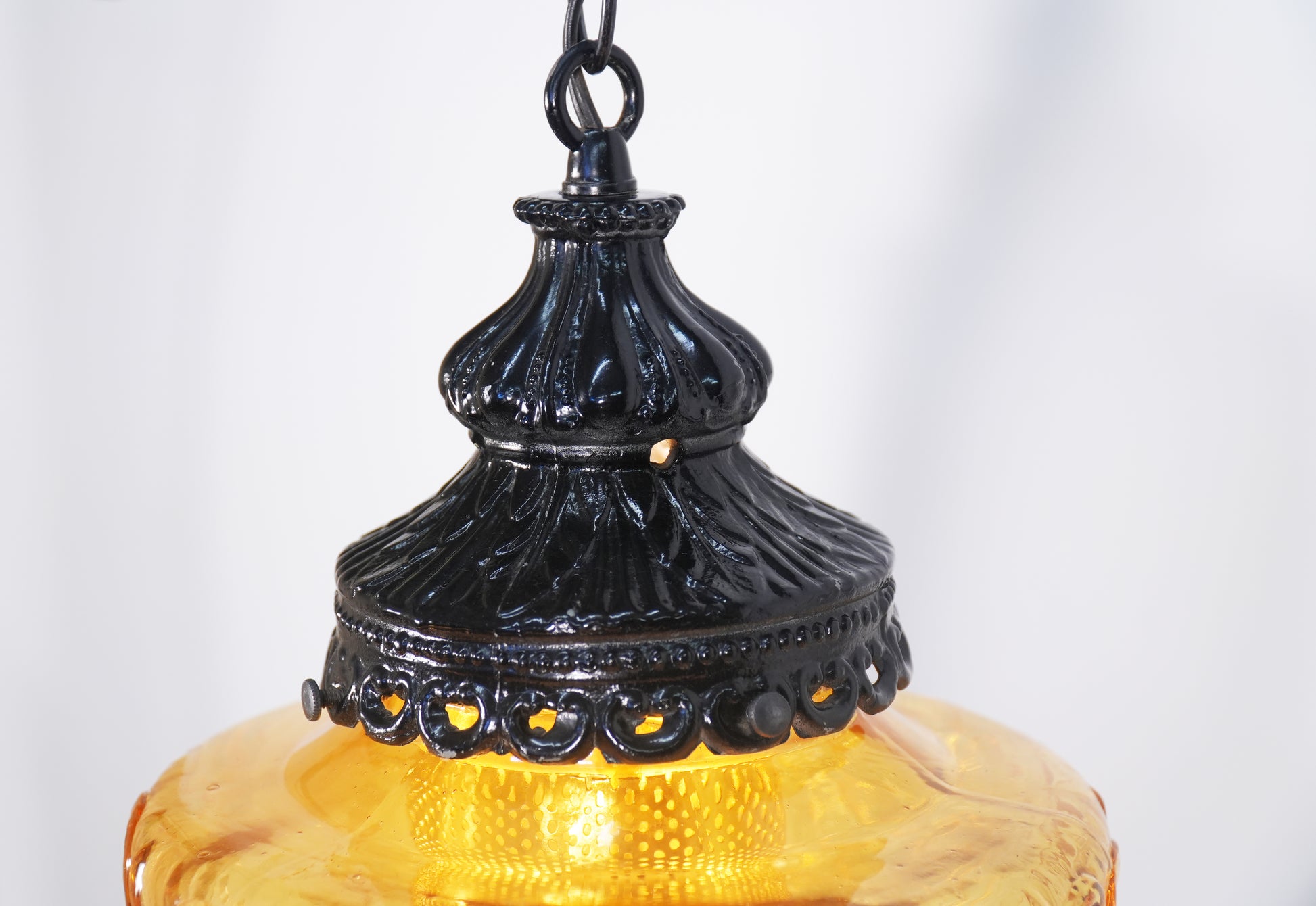 Vintage Mid-Century Amber & Black Hanging Swag Lamp Light w/ Diffuser