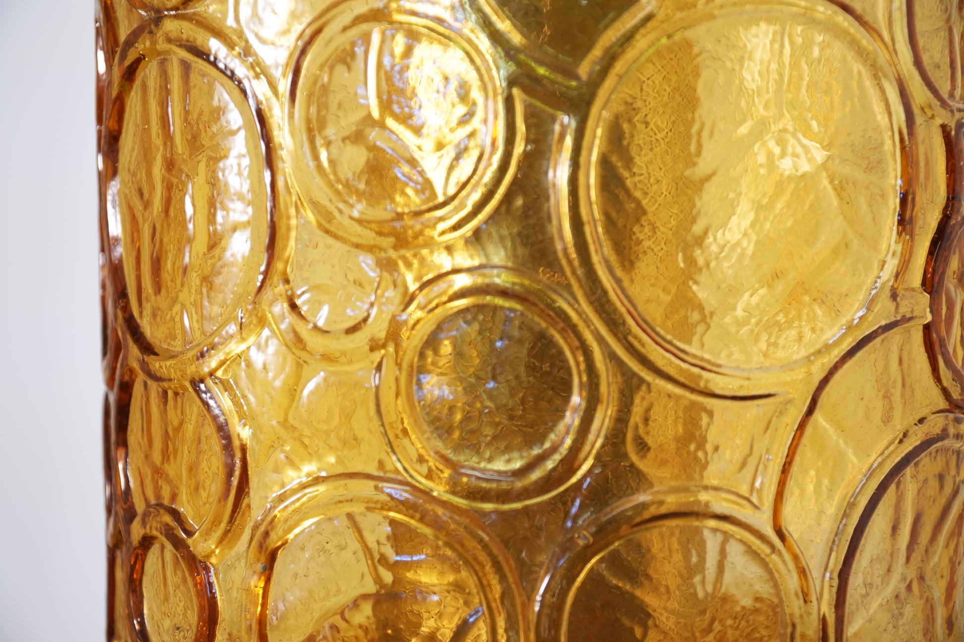 This is a vintage 1960s or 1970s amber glass hanging swag pendant lamp in the Hollywood Regency style with black metal body caps and chain. The lamp itself measures approximately 8" W x 22" H and has about 15' of black chain and wire. The lamp body, glass, diffuser, and chain are all in excellent condition with some light paint wear in areas of metal lamp body and chain. The light works and the cord and socket appear to be in good working condition, however, we are not wiring experts, and we always recommend rewiring for all vintage lighting. See photos for complete condition information.